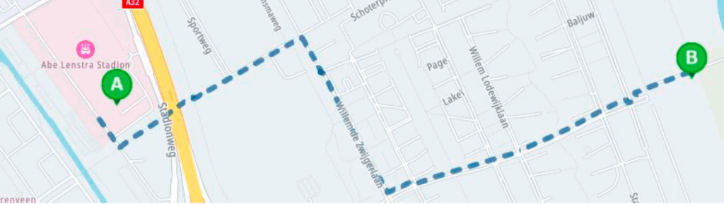 ● Vanuit de richting Sneek/Groninger/Leeuwarden: Neemt op de A32 afslag 12. Sla rechtsaf naar de K.R. Poststraat richting Heerenveen-Centrum. Sla daarna linksaf richting Stadionweg. Volg vervolgens de borden Sportstad