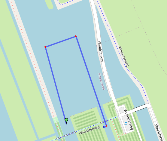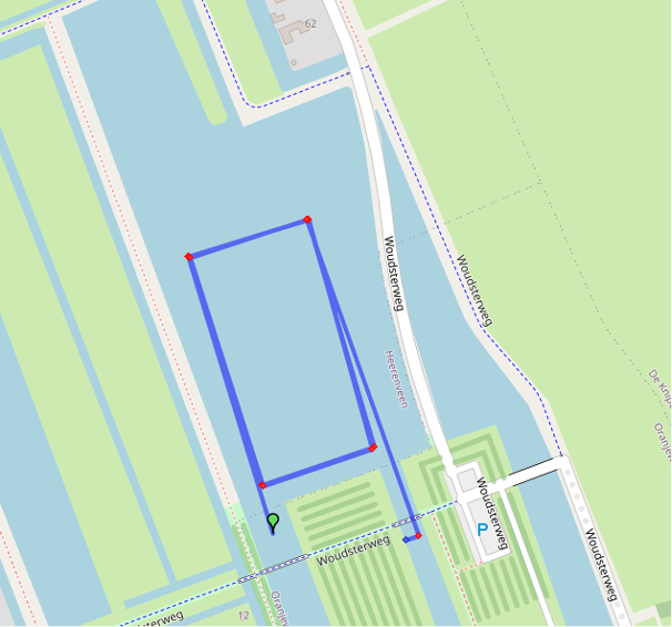 De deelnemers van de OD zwemmen een rechthoek en gaan na de 1e ronde (4e boei) terug naar de 1e boei voor de 2e ronde en idem naar de 3e ronde.